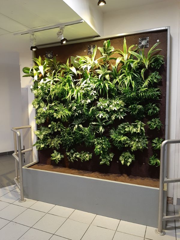 Un biofiltre végétal qui améliore l'air intérieur et accroît le bien-être au cœur des bâtiments : crèches, écoles, collèges, lycées, centres d'apprentissage, bureaux, centres commerciaux !
